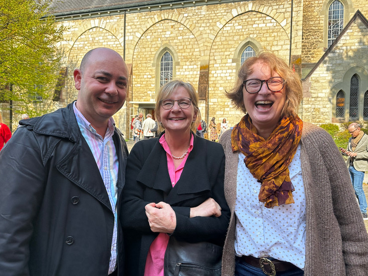 Noch bis Ende April ist Ingrid Schell im Amt, aber schon am Sonntag, 22. März wurde dieser besondere Anlass mit einem gemeinsamen Gottesdienst unter der Leitung von Ingrid Schell, Elke Kreiselmeyer und Albert Dani feierlich begangen. Die Kirchenchöre Heilig Kreuz Binningen-Bottmingen und St. Stephan Therwil wurden für diesen Anlass vereint und von einer Jazzcombo begleitet. Der Komponist der Gospel Mass Ray G. Alis sass eigens am Piano. Eindrückliche Klänge erfüllten die Kirche und verliehen der Feier eine festliche und zugleich berührende Atmosphäre. Die Dirigentin Kristine Jaunalksne vertrat den erkrankten Chorleiter Ralph Stelzenmüller.