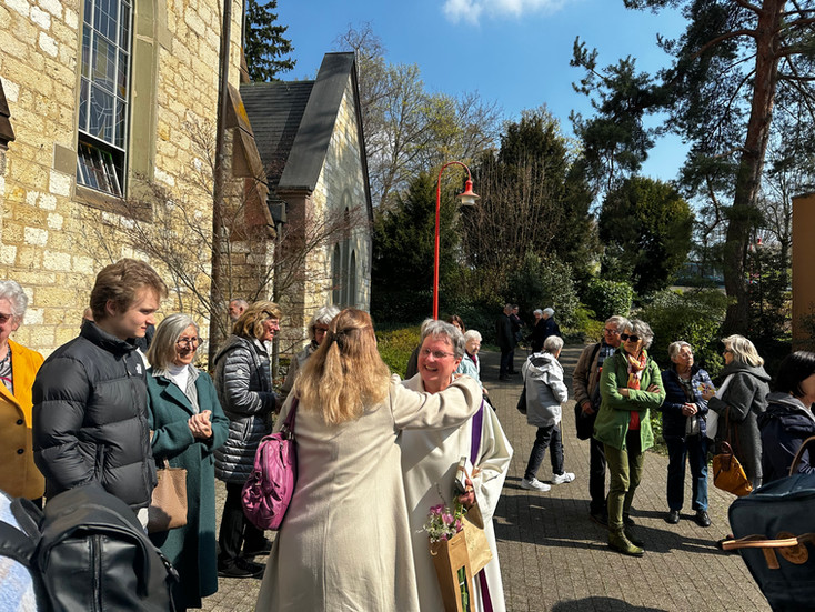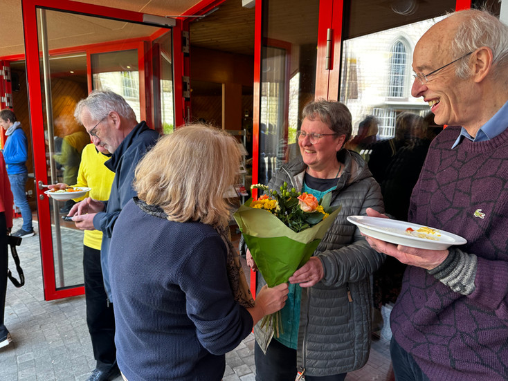 Im Anschluss versammelten sich rund 200 Gäste im Kirchgemeindezentrum zu einem gemeinsamen Mittagessen. In herzlicher Runde wurden Erinnerungen geteilt, kleine Episoden aus dem Alltag, aber auch so manche liebenswerte Geschichte, die ein Schmunzeln hervorrief und die besondere Zeit mit der Gemeindeleiterin lebendig werden liess. Dabei wurde ihr auch ein augenzwinkernder Rat mit auf den Weg gegeben: Nie schneller unterwegs zu sein, als die himmlischen Begleiter folgen können.